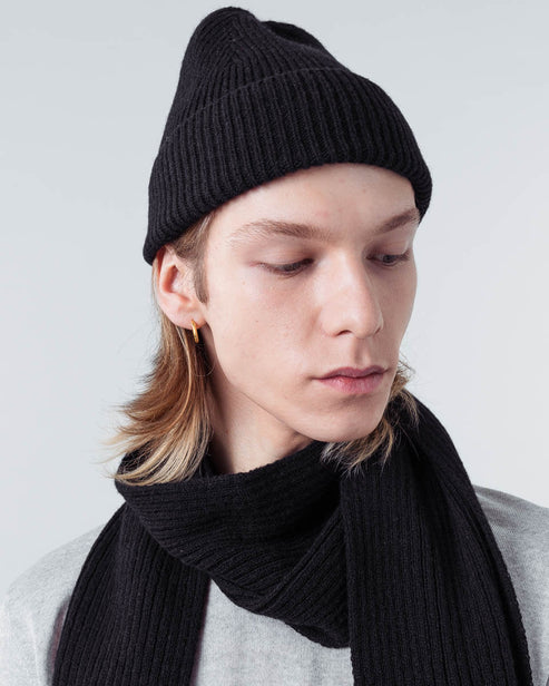 Made in the same high-quality wool as the Eiteråga scarf, the two make a versatile set for all occasions. Choose a Black or Grey scarf for a stylish match with this black beanie.